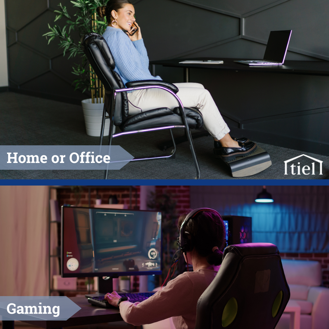 Rocking foot rest provides active movement; use as a stationary foot stool under desk or as a dynamic footrest; suitable for office chair, computer desk, or gaming setup.